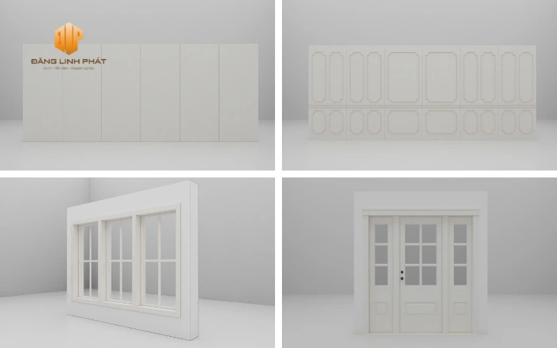 Thiết kế 3D mẫu cửa và vách thạch cao trước khi thi công – giúp khách hàng dễ hình dung không gian thực tế.